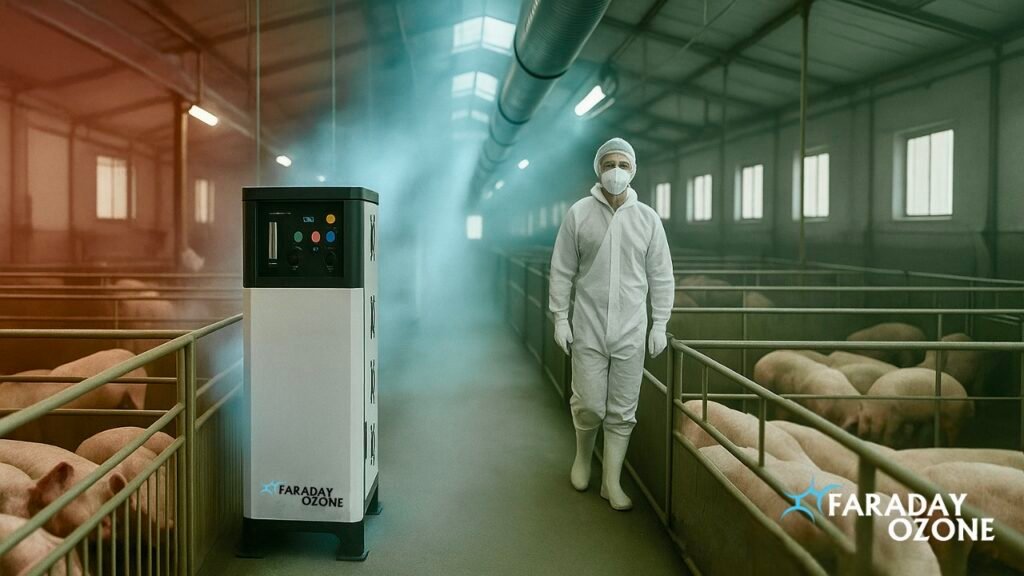 At Faraday Ozone, we deliver advanced ozone-based disinfection systems that are scientifically proven to inactivate the African Swine Fever (ASF) virus by 99.9% within minutes, making them one of the most effective solutions for pig farm biosecurity. Unlike traditional disinfectants such as chlorine and UV, ozone technology offers superior oxidizing power—50% stronger than chlorine and up to 3,000 times faster in action. This ensures that pathogens, including the ASF virus, are neutralized quickly and effectively. Ozone’s broad-spectrum disinfection ability allows it to penetrate every corner of pig houses—air, water, surfaces, equipment, and hidden spaces—providing a complete farm hygiene solution. Another major advantage is that ozone is residue-free, naturally converting back into oxygen after use, leaving no chemical traces that could harm pigs, workers, or the environment. Backed by laboratory studies and proven results, Faraday Ozone’s technology stands as a reliable, eco-friendly, and powerful tool to protect pig farms against the ongoing ASF crisis across Vietnam, China, India, the Philippines, and other ASF-affected regions. affected regions.
